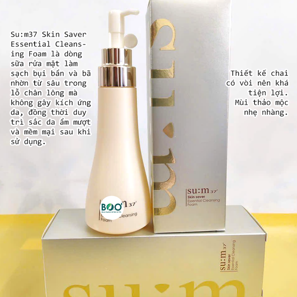 Su:m 37 Skin Saver Essential Cleansing Foam hỗ trợ làm sạch bụi bẩn, dầu thừa và tạp chất trên da một cách dịu nhẹ. Kết cấu bọt mềm mịn giúp da sạch thoáng mà không gây cảm giác khô căng, góp phần duy trì sự cân bằng tự nhiên sau mỗi lần rửa mặt. Khi sử dụng đều đặn, làn da có thể trở nên dễ chịu hơn và hạn chế tình trạng kích ứng do làm sạch quá mạnh.