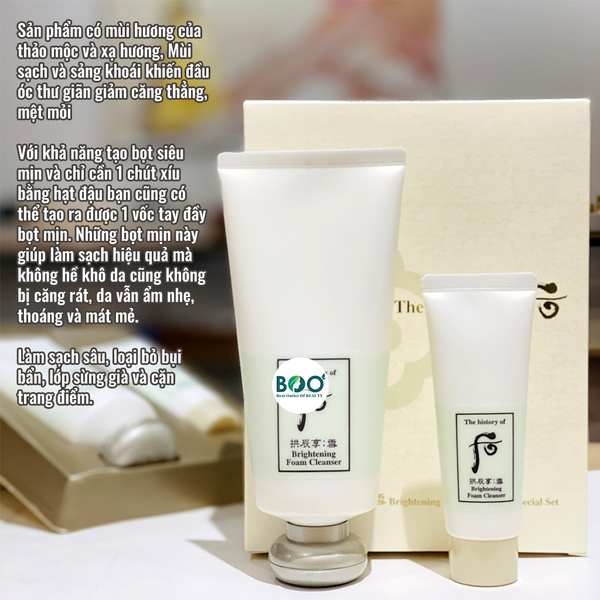 The History Of Whoo Brightening Foam Cleanser hỗ trợ làm sạch sâu nhưng vẫn duy trì độ ẩm tự nhiên, giúp da trở nên dễ chịu hơn sau khi sử dụng. Khi dùng đều đặn, sản phẩm có thể góp phần cải thiện tình trạng da xỉn màu, hỗ trợ làn da sáng đều và rạng rỡ hơn theo thời gian.