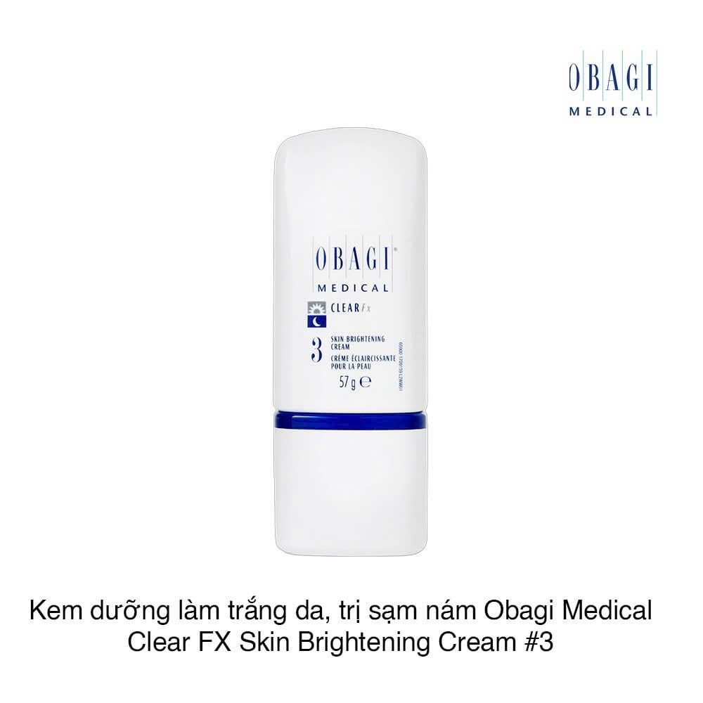 Obagi Nu-Derm Clear Fx #3 Skin Brightening Cream là kem dưỡng làm sáng và hiệu chỉnh sắc tố da, ngăn ngừa lão hoá da hiệu quả với công thức mới cải tiến không chứa thành phần Hydroquinone. Thích hợp sử dụng ngày và đêm cho mọi loại da, kể cả da nhạy cảm.