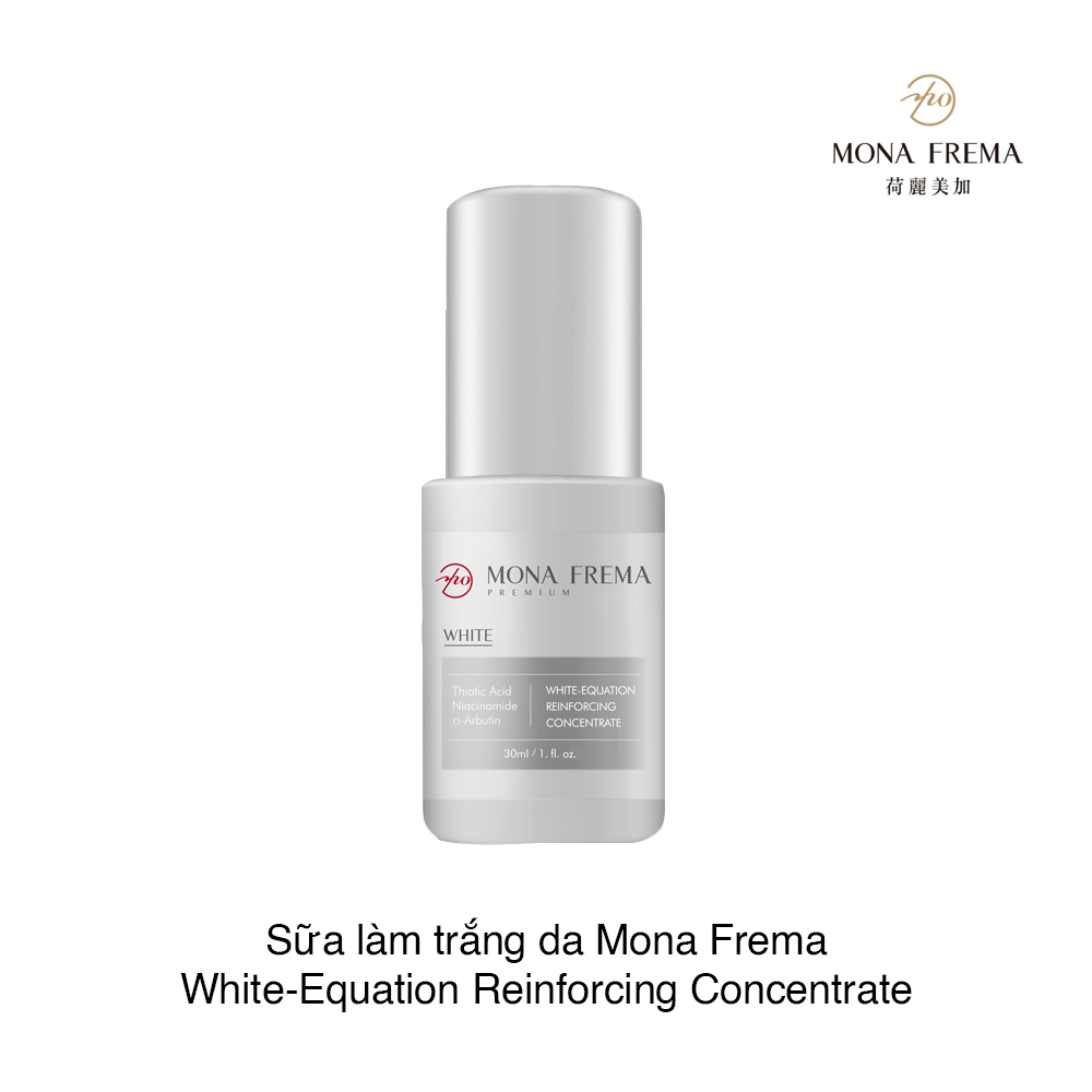 Mona Frema White-Equation Reinforcing Concentrate Whitening Extension được các chuyên gia da liễu kê đơn cho khách hàng đang trong & sau đợt điều trị nám tập trung. Khách hàng đang có nhu cầu duy trì, tăng sắc tố, cần làm trắng da nhưng da nhạy cảm.
