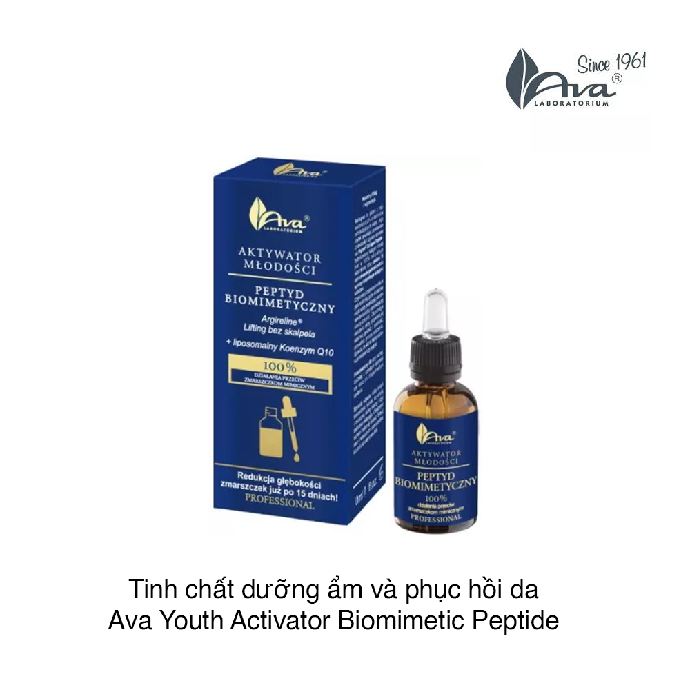 Tinh chất dưỡng ẩm và phục hồi da Ava Youth Activator Biomimetic Peptide chứa hoạt hóa axit hyaluronic Hydranov ™ – Hiệu quả gấp 3 lần trong việc tăng cường hydrat hóa da so với axit hyaluronic.