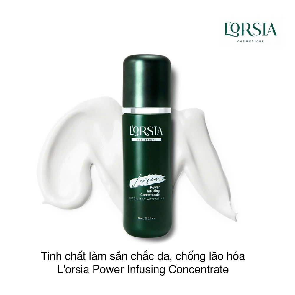 Tinh chất L'orsia Power Infusing Concentrate dưỡng da chống lão hóa L’orsia là sản phẩm được sản xuất trực tiếp tại Nhật Bản. Với sức mạnh của hợp chất Sodium Hyaluronate và 2% Niacinamide, sản phẩm là giải pháp tối ưu cho làn da khô ráp, thiếu ẩm, không đều màu. Công thức chứa 8,3% Extremosio™ giúp kích hoạt cơ chế Autophagy bên trong da, từ đó phục hồi và củng cố hàng rào bảo vệ da, khoanh vùng và khắc phục các tác động lão hoá.
