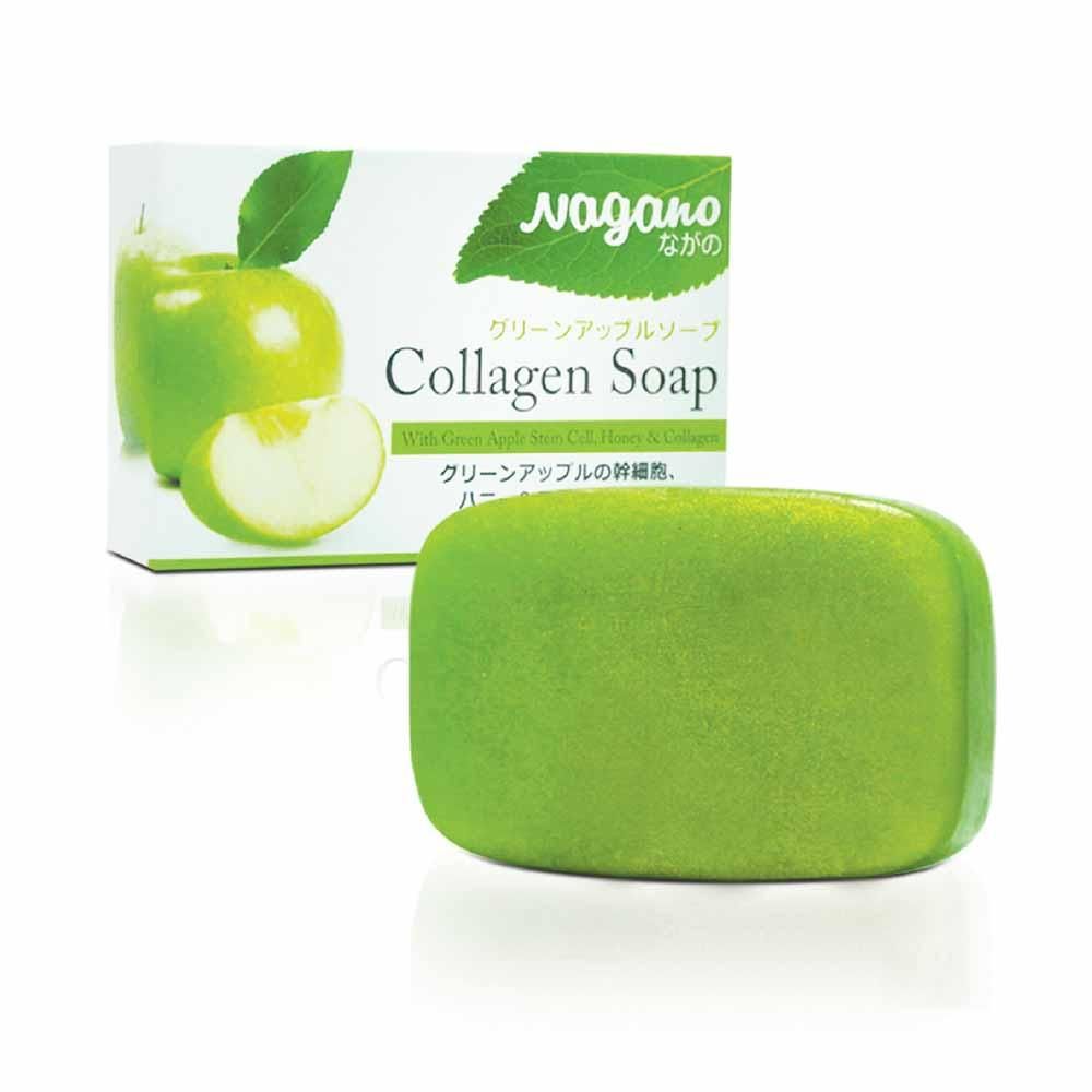 Xà Phòng Rửa Mặt Chiết Xuất Táo Xanh Nagano Japan 100g - Green Apple Collagen Soap - Hỗ trợ làm sạch dầu, bụi bẩn, ngừa mụn và se khít lỗ chân lông.