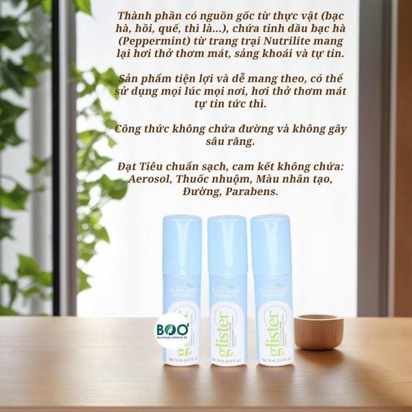 Glister Mint Refresher Spray giúp giảm hôi miệng, khử mùi và mang lại hơi thở thơm mát dài lâu.